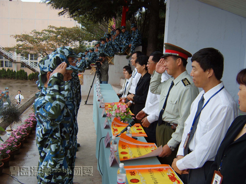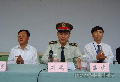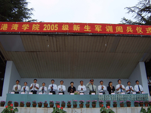 9月28日上午,青岛港湾学院2005级学生军训阅兵典礼在主校区体育场举行。青岛港集团党委副书记、纪委书记丁照熙,学院党委书记、院长刘映华,济南陆军学院军训办主任刘鹏大校等军地领导出席了阅兵典礼,典礼由学院党委副书记张仁明主持。