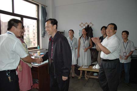 随后,王副书记来到各系部教研室,向工作在教学一线的广大教师进行慰问。他每到一个教研室 都与 老师们进行亲切交谈,他勉励教师要教书育人,桃李天下,并要求教育行政部门要多关心教师生活,解决他们的后顾之忧,使他们能够一心一意地投入到教学岗位上。王文华副书记热情洋溢的话语暖人心怀,不时地并引起了教师们的阵阵掌声。