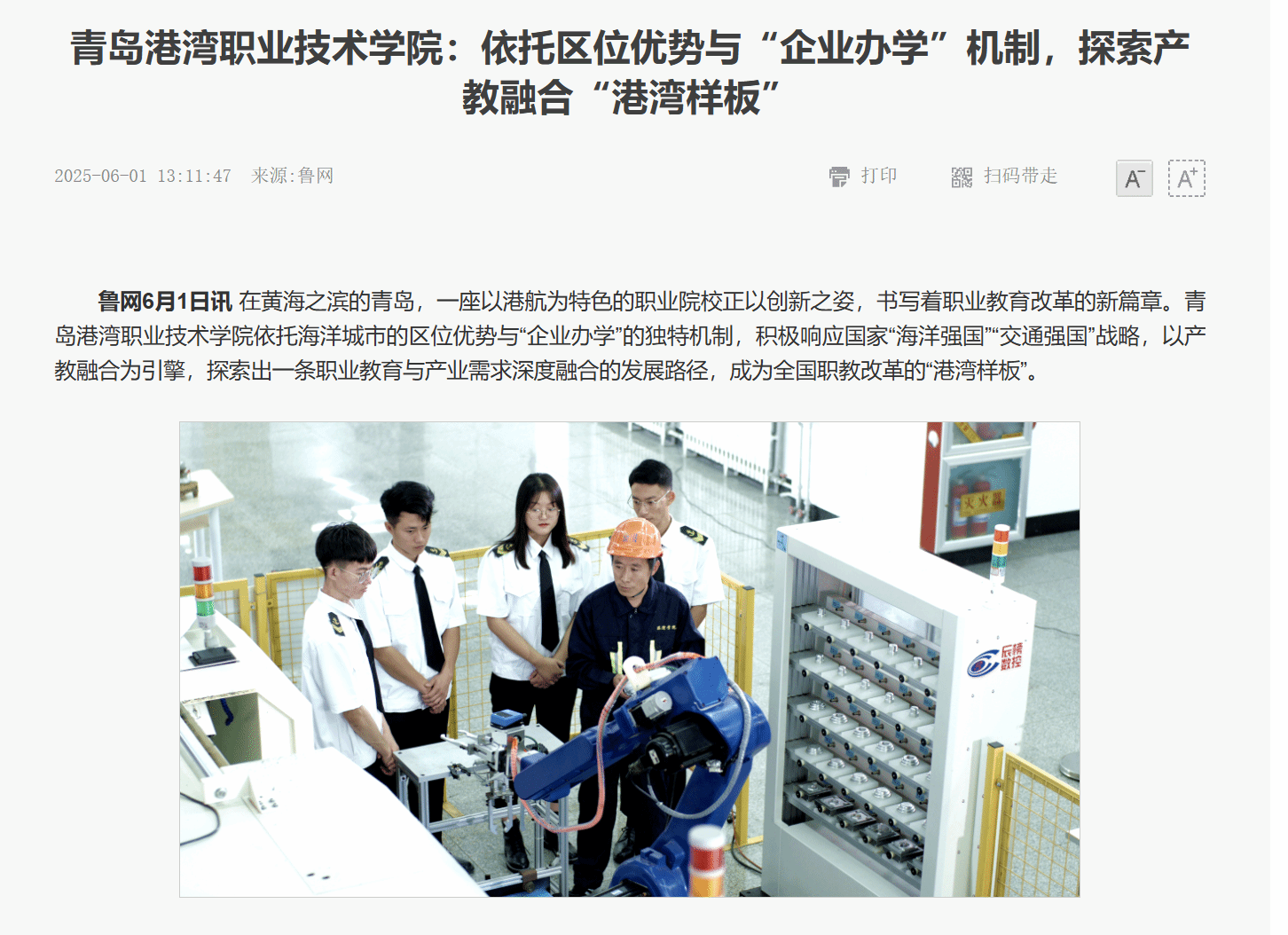 鲁网.青岛:《青岛港湾职业技术学院:依托区位优势与“企业办学”机制,探索产教融合“港湾样板”》