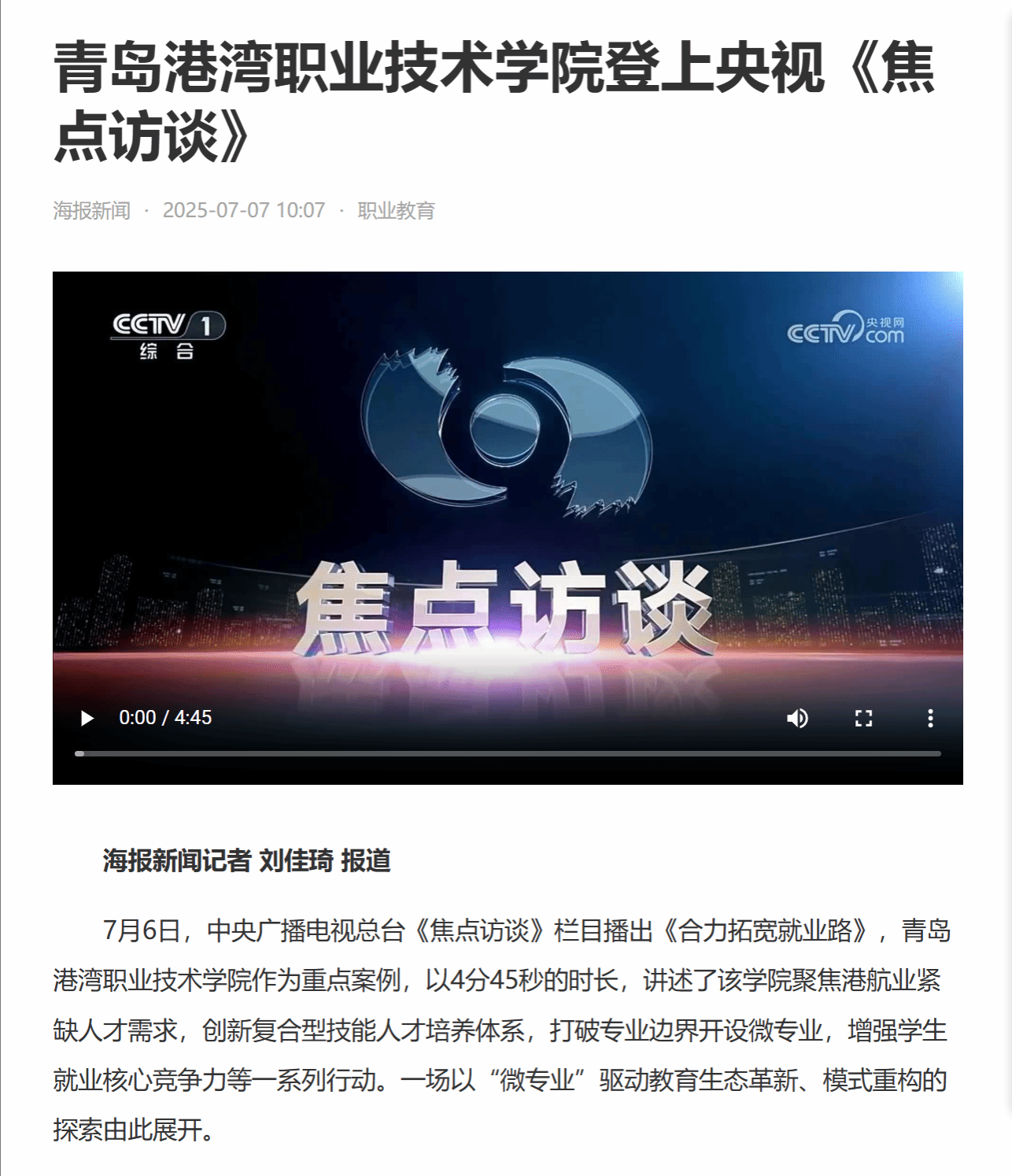海报新闻:《青岛港湾职业技术学院登上央视《焦点访谈》》