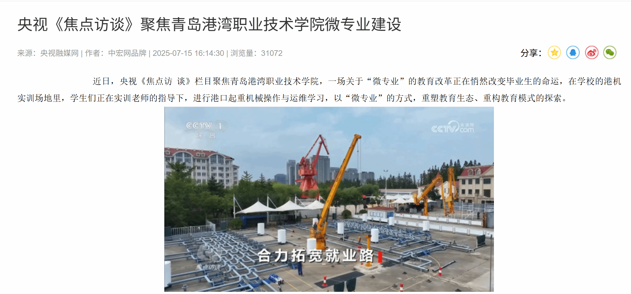 央视融媒网:《央视《焦点访谈》聚焦青岛港湾职业技术学院微专业建设》