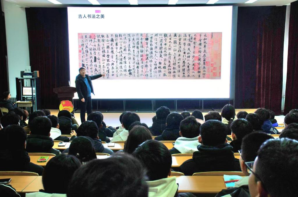 为了传承和弘扬优秀书法文化,12月19日信电学院在B5小报告厅开展了第二期美育系列讲座活动,主题为“匾额对联——我们身边的书法”,辅导员纪强主讲,23级学生代表参加。