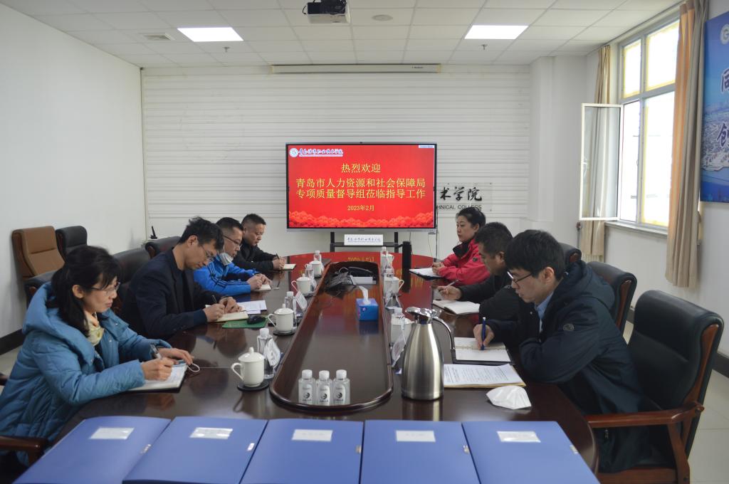 2月20日,青岛市人社局人力资源发展研究与促进中心来我院指导工作,对我院职业技能等级认定工作开展情况进行专项质量督导,学院实训中心及组织参加认定的教师师参加座谈交流。