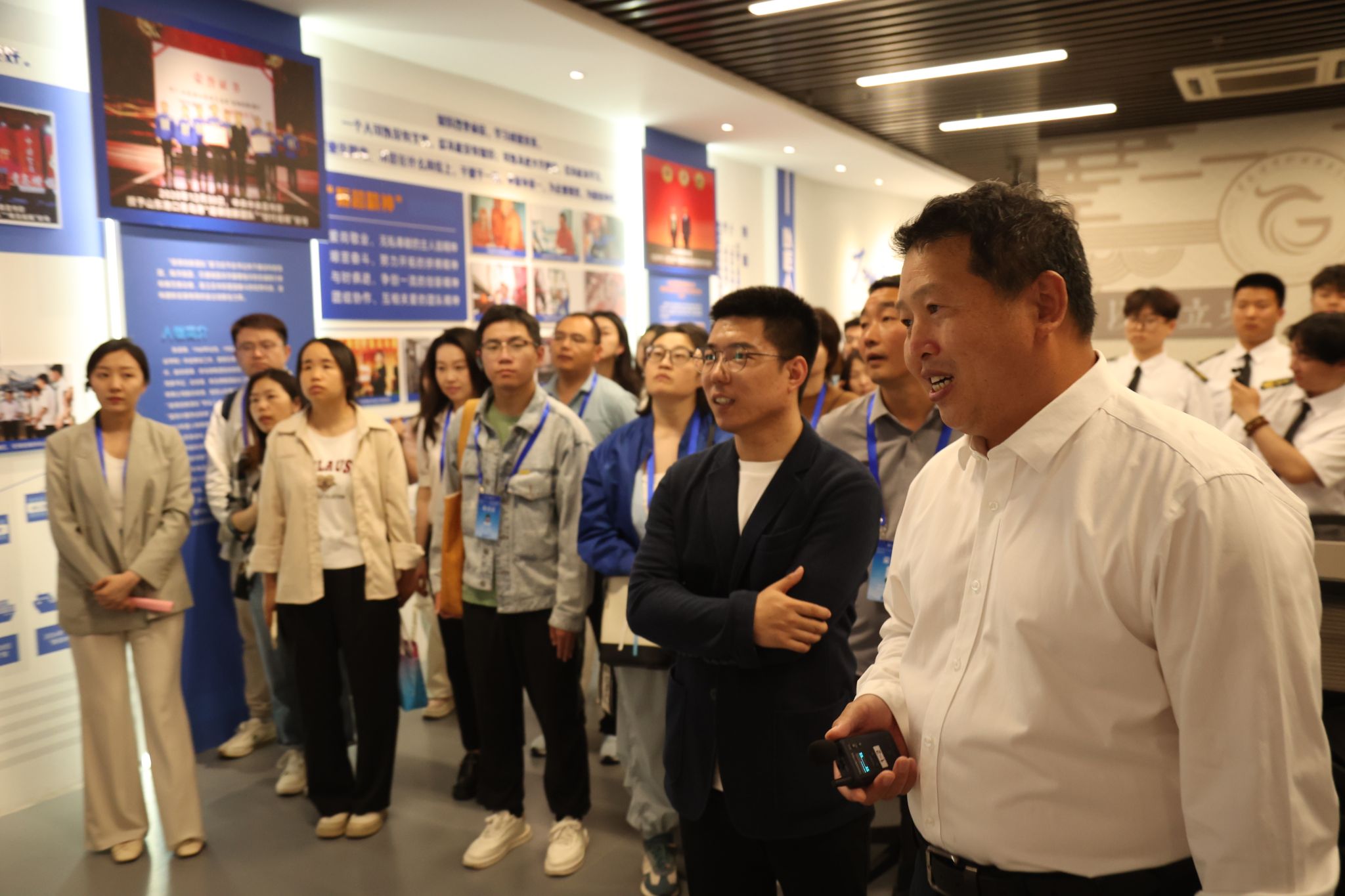 来访记者一行抵达学院产教融合大厅,赵庆松致辞欢迎并对学院历史进行讲解。在调研采访环节,30余位主流媒体记者参观了大师工作室、文体中心游泳馆与校内物流机械实训场地,与现场领导、老师及同学们进行面对面深入交流与采访。期间,物流机械实训教研室展示了输油臂操作、吊车、叉车、挖掘机等岗位绝活,在现场教师的讲解下,直观的感受到学院在港口机械专业实践领域过硬的技能操作能力和特色。最后,媒体记者们参观了全国爱国教育基地——山东港口青岛港自动化码头以及学院实践教学基地。
