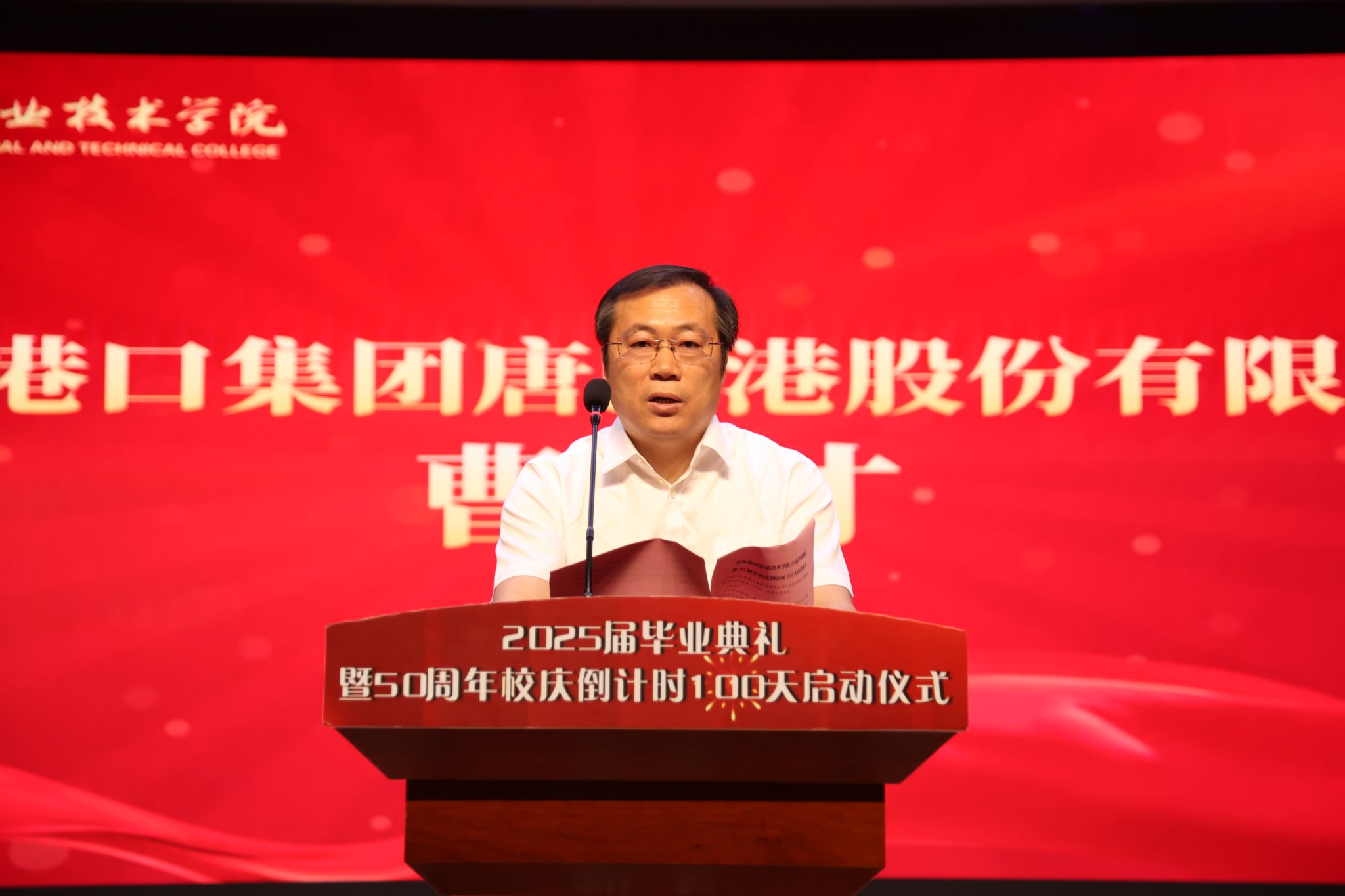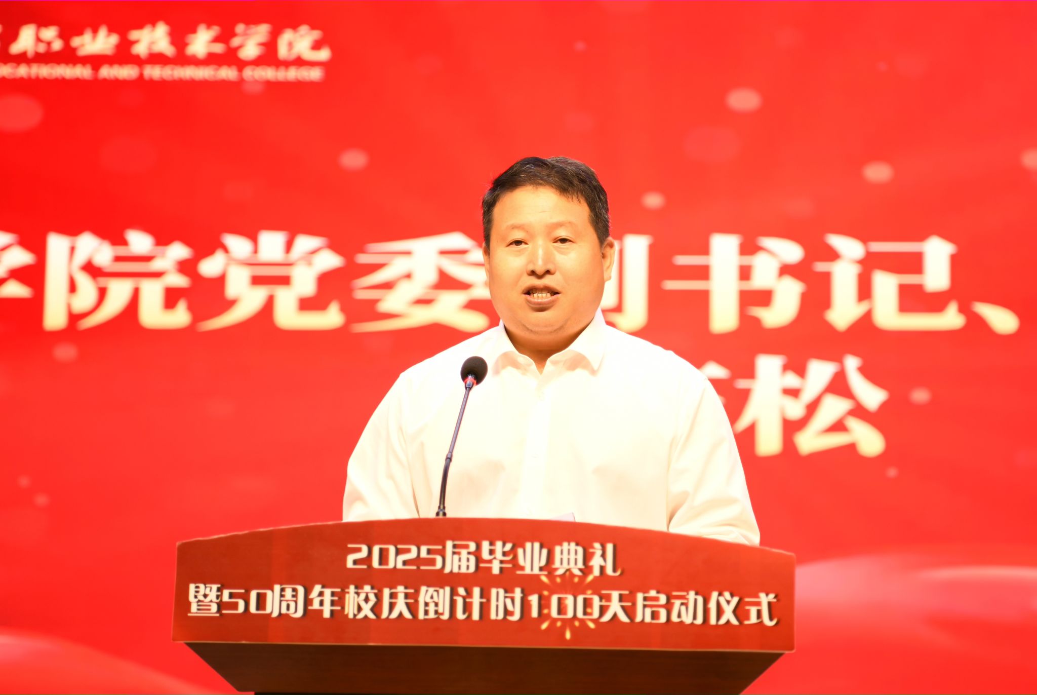 6月20日,学院在报告厅举行2025届毕业典礼暨50周年校庆倒计时100天启动仪式。职教集团党委书记、董事长,学院党委书记徐国旺出席活动并讲话,学院党委副书记、院长赵庆松出席活动并致辞,学院领导、教师、毕业生、校友以及企业代表齐聚一堂,共同见证这一重要时刻。仪式由学院党委副书记、纪委书记王海蛟主持。
