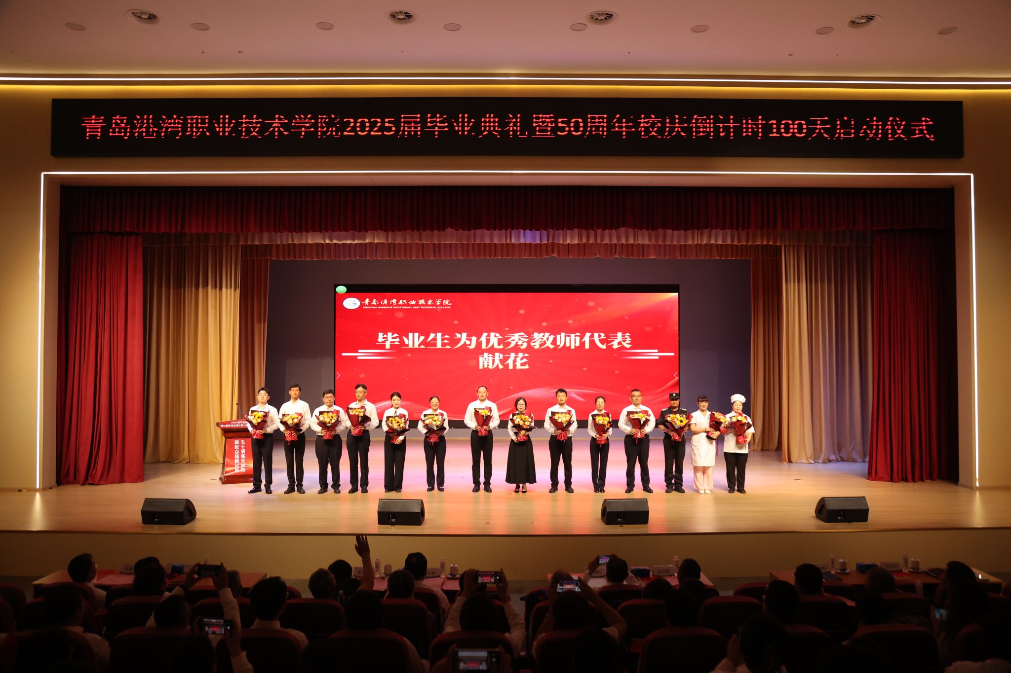 仪式在《海阔天空》的激昂旋律与师生合唱《是老师是学生》的温情互动中落下帷幕。“愿你们永葆热爱,怀揣梦想,在属于自己的航道上披荆斩棘!母校灯塔永远为你们照亮!”全体师生起立目送毕业生离场,掌声久久回荡。