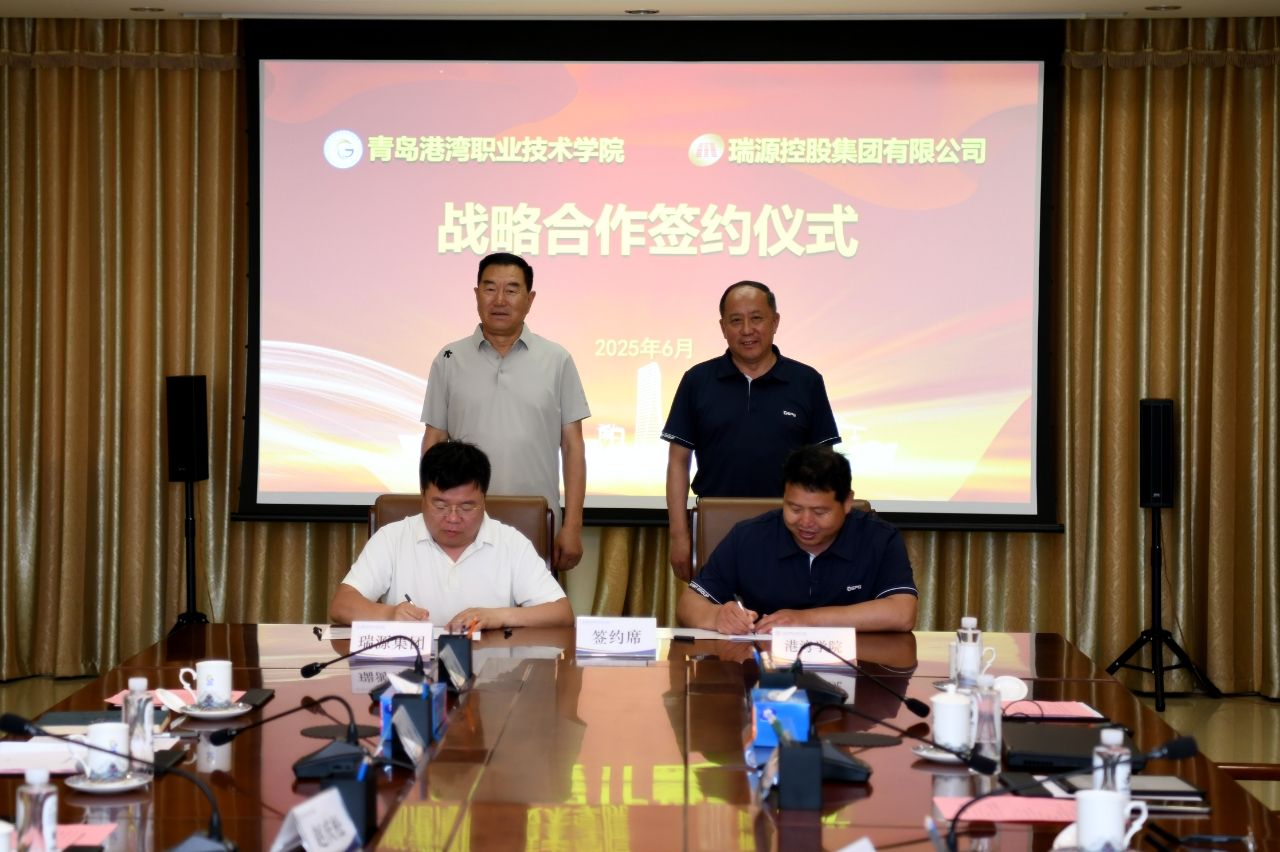6月26日,学院与瑞源控股集团签署战略合作协议。山东港口职教集团党委书记、董事长、青岛港湾职业技术学院党委书记徐国旺,瑞源控股集团董事长于瑞升出席仪式并进行座谈,校企双方就产教融合协同发展、低空经济产业布局等议题进行充分交流。学院党委副书记、院长赵庆松,瑞源控股集团副总经理孔锁财代表双方签署战略协议。