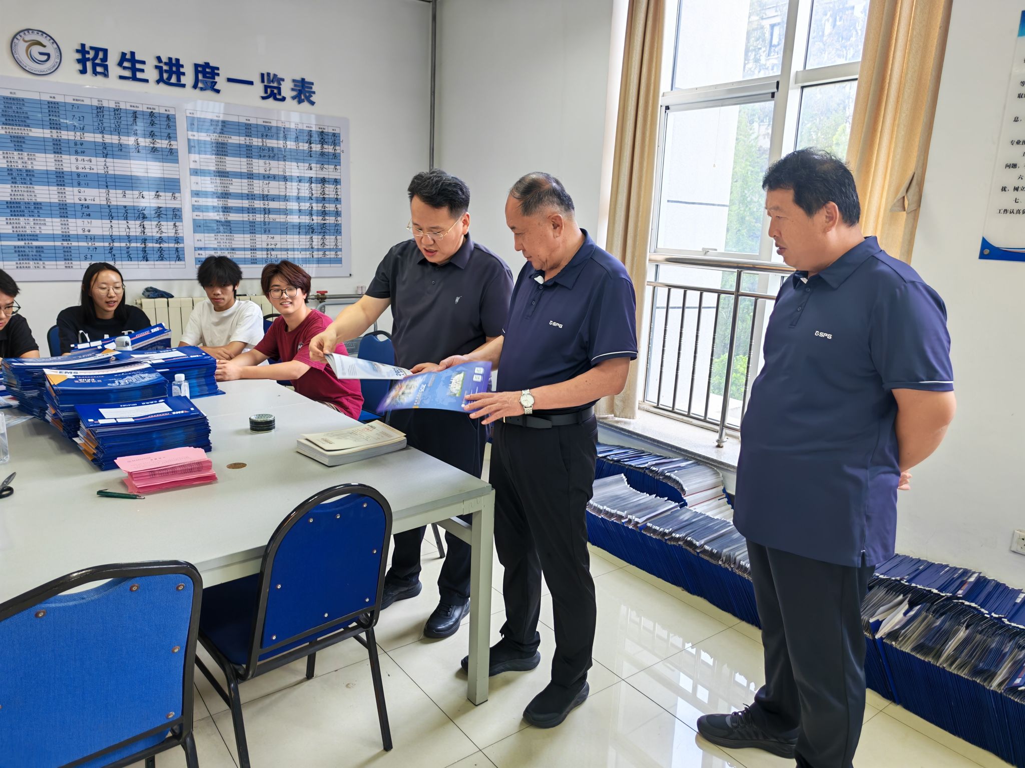 8月7日,学院党委书记徐国旺,党委副书记、院长赵庆松前往学院2025年招生录取现场调研指导工作,亲切慰问一线招生录取工作人员,听取发展规划部负责人关于2025年招生录取工作的汇报,并就高质量完成本年度招生录取工作提出具体要求。学院党委委员、副院长、工会主席吕楠,综合管理部以及党委宣传部负责人陪同调研。