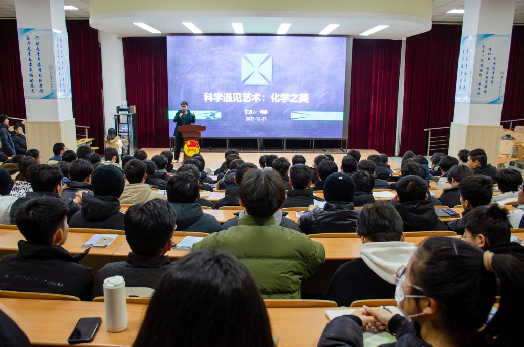 为了培养学生对化学科学的兴趣,感受化学之美。12月28日晚信电学院在B5小报告厅开展了第三期美育系列讲座活动,主题为“科学遇见艺术:化学之美”,信电学院辅导员闫鹏主讲,22、23级学生代表参加。闫鹏从历史角度详细讲述了化学的起源和发展过程。他指出,化学并非突然出现,而是经过数千年的积累和演变,从最初的原始状态逐渐发展到今天的成熟科学。他强调,化学在现代生活和生产中扮演着至关重要的角色。无论是酿酒业、化...
